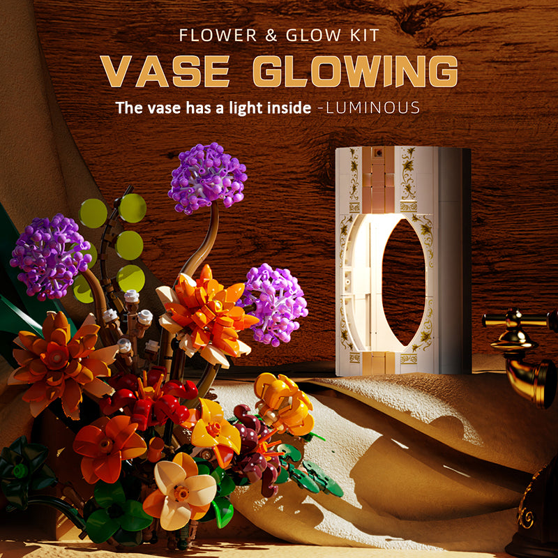 BrickEgo Luminous Floral Vase – 890 PCS Creative Building Block Display Set